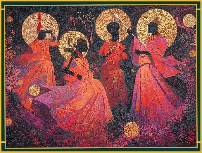 The Eweka Collection reimagines the grandeur of the Benin Kingdom for modern interiors. Hand-painted with meticulous craftsmanship.